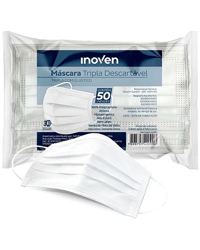 Máscaras Descartáveis Tripla Com Elástico Inoven 100 Unidades